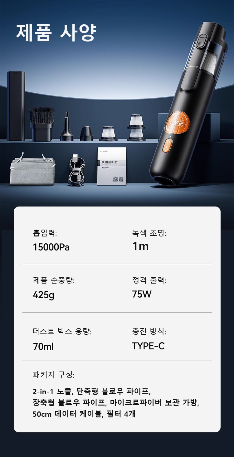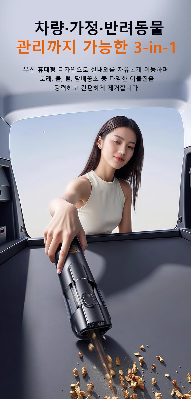 집과 자동차 모두 깨끗하게! 초강력 흡입력으로 먼지 걱정 끝!