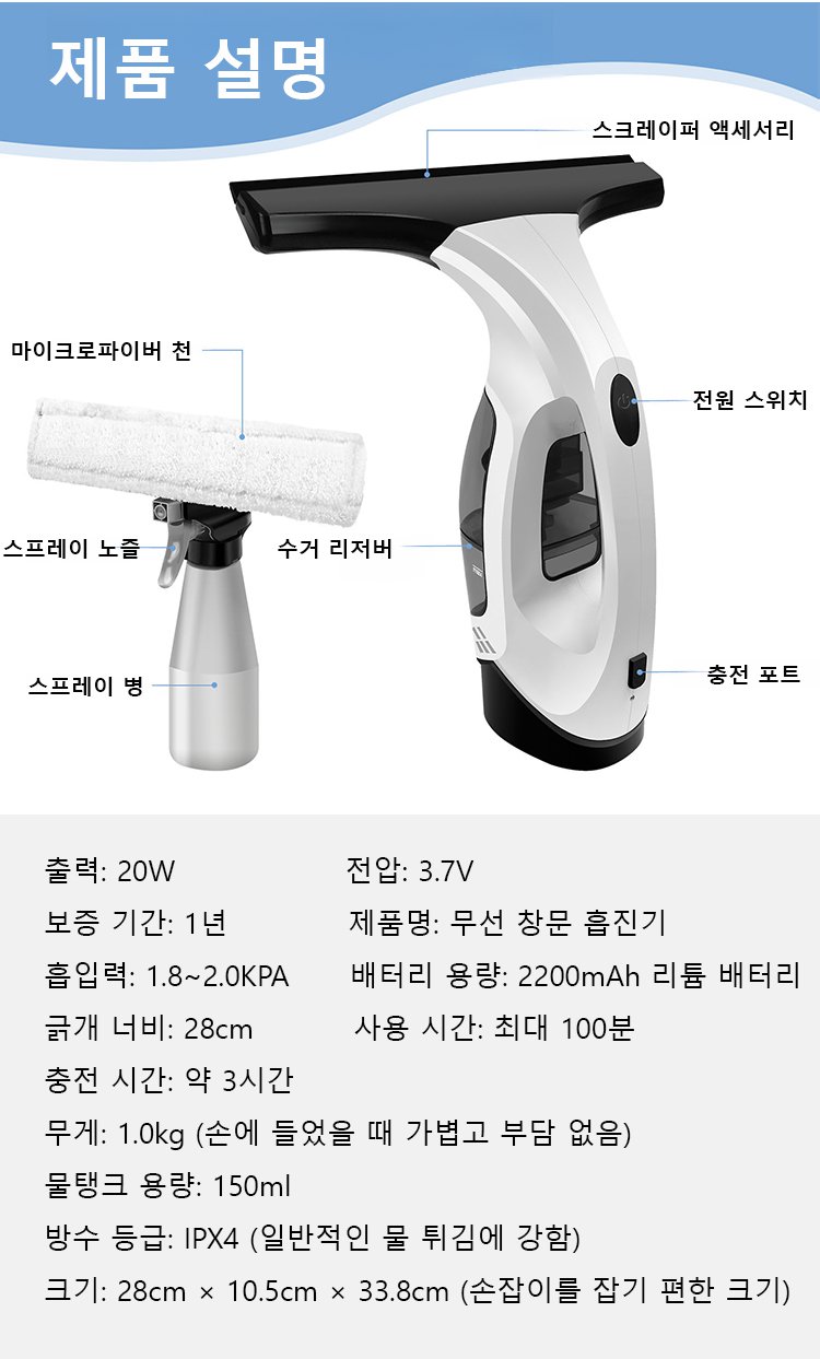 가정용 휴대용 전동 유리 거울 청소기